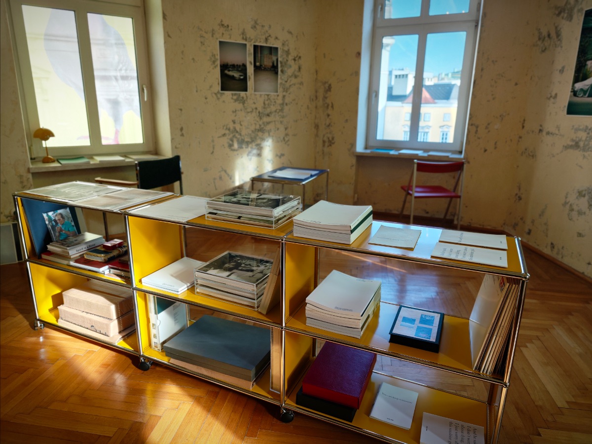 Gezeigt werden in Summe 13 Publikationen sowie 8 C-Prints.