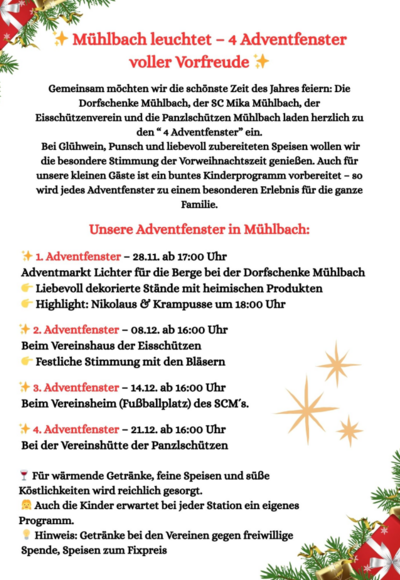Am 28.11.2025 ab 17:00 Uhr bei der Dorfschenke in Mühlbach.