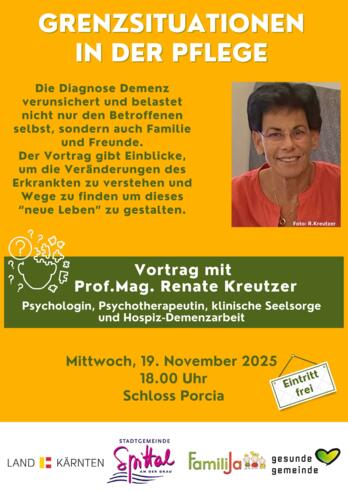 Vortrag mit Prof. Mag. Renate Kreutzer (Psychologin, Psychotherapeutin, klinische Seelsorge und Hospiz-Demenzarbeit)