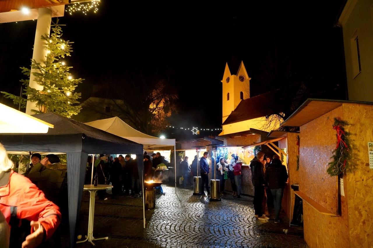 Für die musikalische Umrahmung sorgen zarte Harfenklänge und Bläsergruppen, die den Markt in eine besinnliche Vorweihnachtsstimmung tauchen.