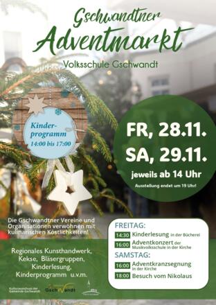 Am 28. und 29. November lädt die Gemeinde Gschwandt herzlich zum kleinen, feinen Adventmarkt ein. In stimmungsvoller Atmosphäre erwarten die Besucher regionales Kunsthandwerk, Adventkränze, handgemachte Kekse und liebevoll gefertigte Handarbeiten.