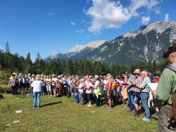 Gemeinsame Wanderung auf die Hämmermoosalm. Bei der Alm und auf den Almböden, mit herrlichem Blick auf die Hohe Munde, singen wir unsere Lieder. Stärkung gibt es auf der Alm. - Samstag, 30.08.2025