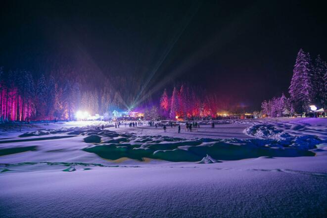 • Eislaufen auf einer zauberhaft beleuchteten Fläche