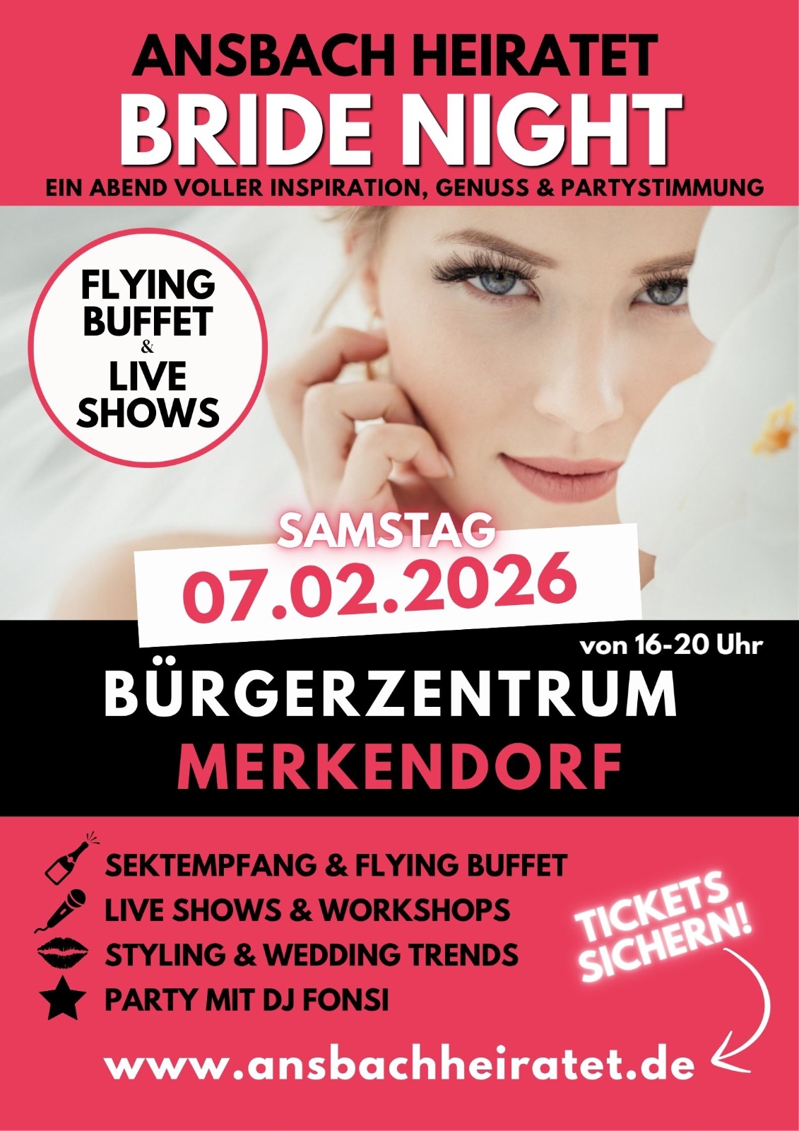 Freut euch auf einen unvergesslichen Abend voller Hochzeitsinspirationen bei der BRIDE NIGHT – präsentiert von ANSBACH HEIRATET!