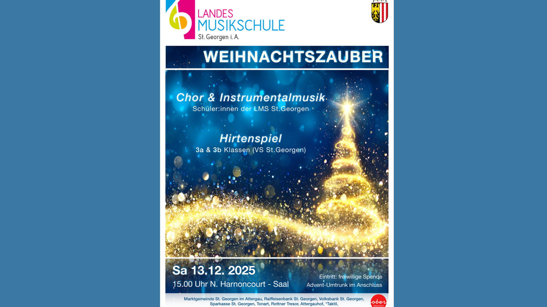 Am Sa 13.12., 15.00 Uhr findet das mit „WEIHNACHTSZAUBER“ betitelte Weihnachtskonzert der LMS St. Georgen/A. statt.