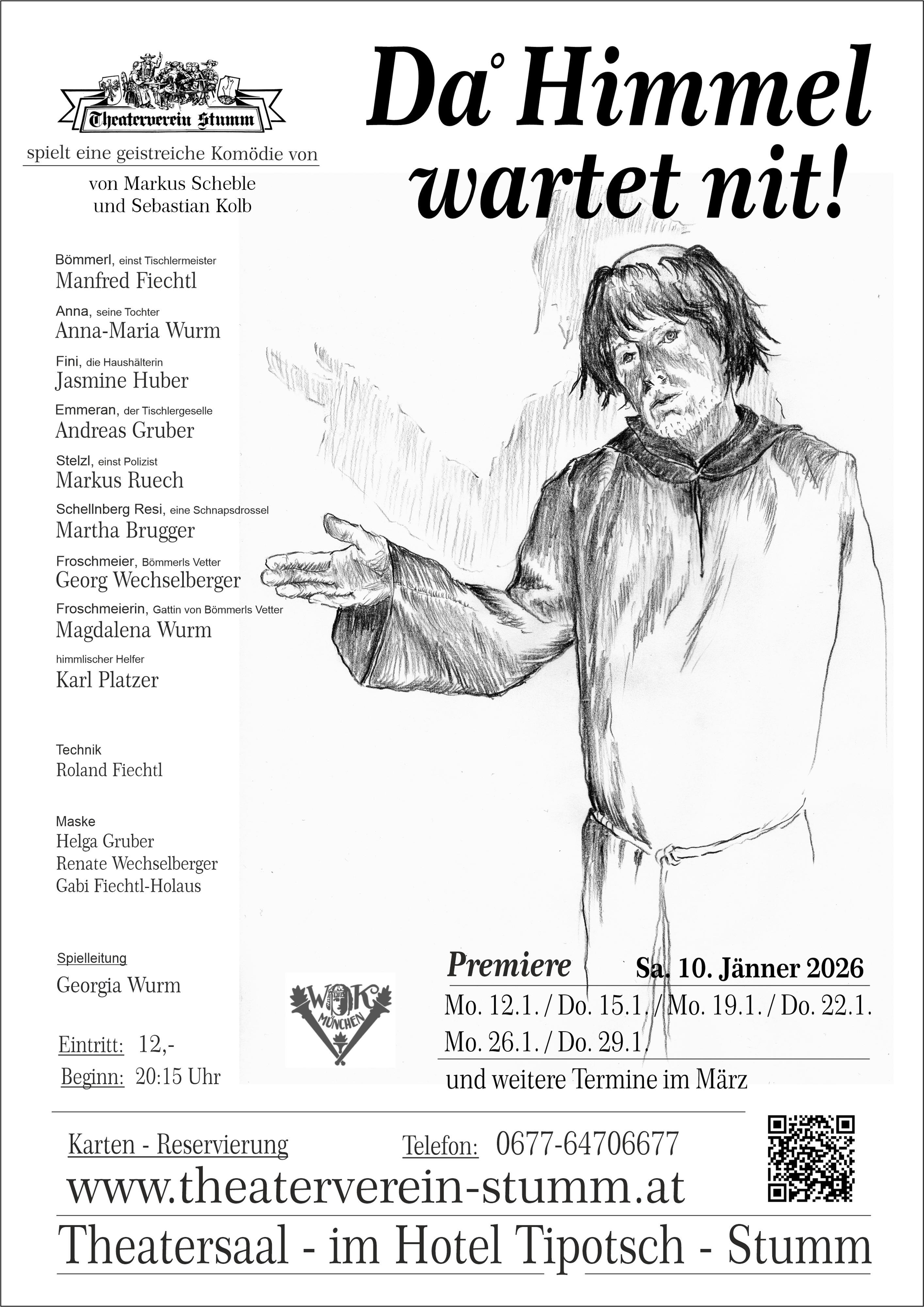 Reservierungen unter +43 677 64706677 oder online unter www.theaterverein-stumm.at/kartenreservierung/