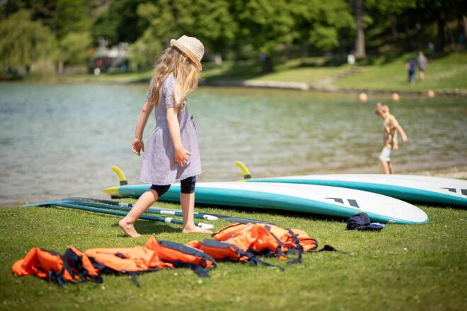 Der Surf- und Freizeitclub lädt Kinder zu einem "Schnuppern" auf dem Stand up Paddle ein.
