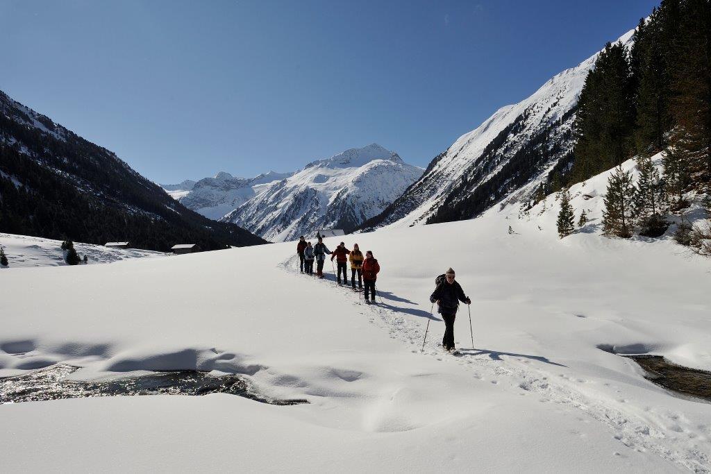 Diese etwas anspruchsvollere Schneeschuhwanderung führt durch verschneite Winterlandschaften im Nationalpark Hohe Tauern.