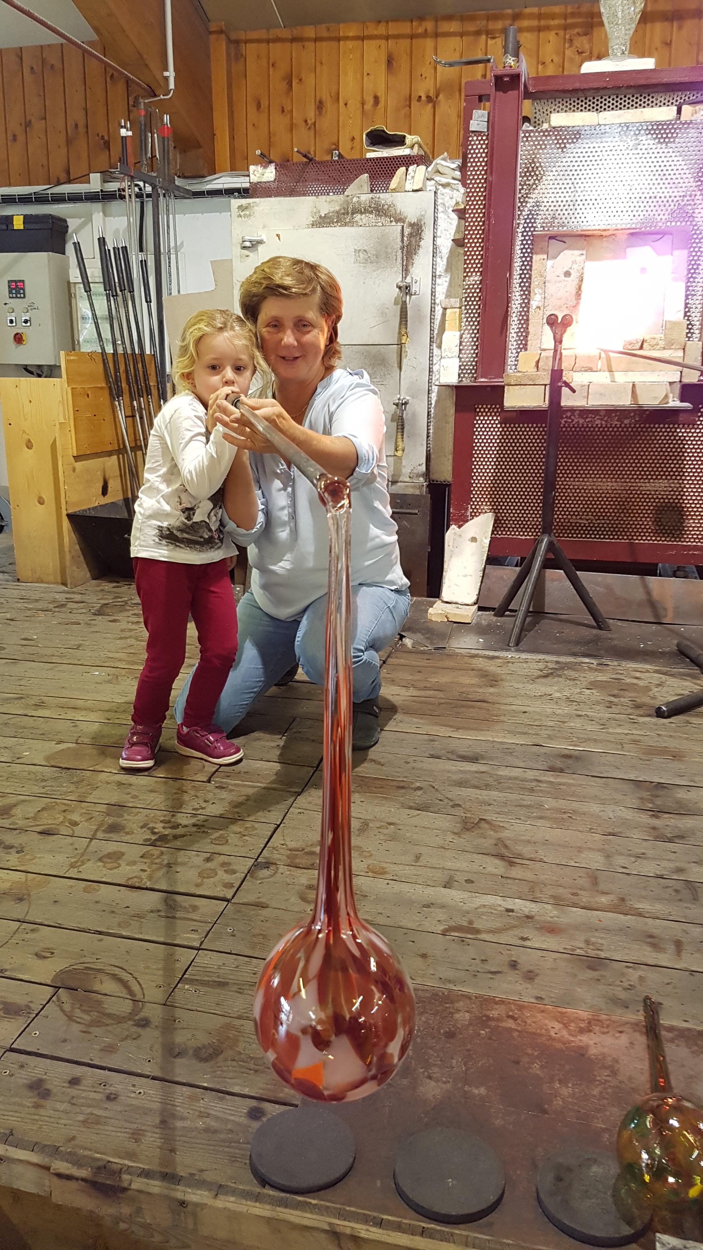 Führung und Besucher der Glasmanufaktur Monika Riedl ist gratis. 1 Gießkugel gestalten und mit nach Hause nehmen kostet € 29,--