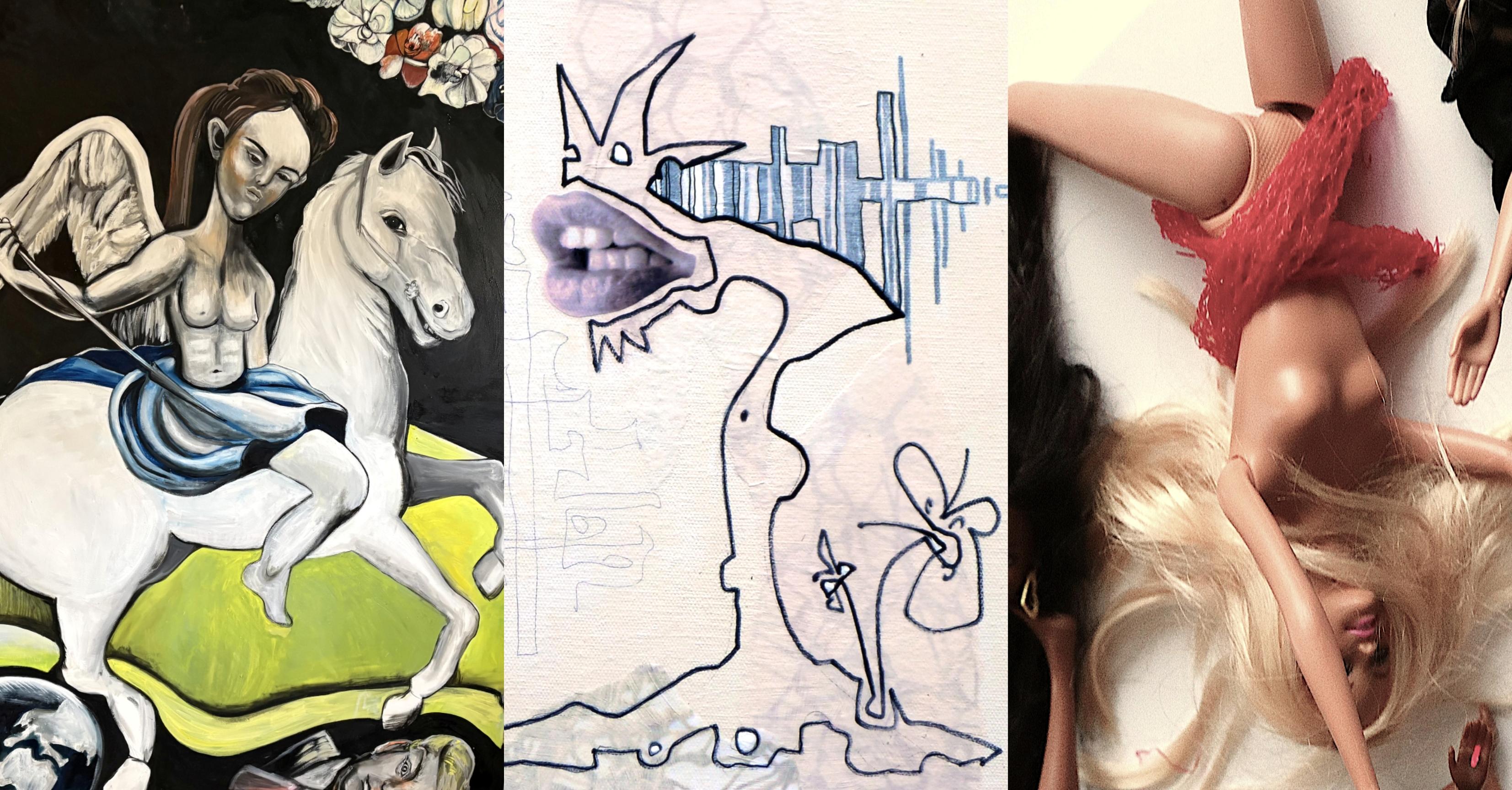 In der interdisziplinären Ausstellung „zeiTräume“ navigieren die drei Künstlerinnen Barbara Ambrusch-Rapp, MAG Marjeta Angerer-Guggenberger und Ina Riegler zwischen historischen Epochen, formalen Zugängen und gesellschaftlichen Fragestellungen der Gegenwart und Zukunft. Während Ina Riegler in der Auseinandersetzung mit altmeisterlich klassischen Maltechniken kunstgeschichtliche Elemente in gegenwärtige Allegorien übersetzt, stellt MAG Marjeta Angerer-Guggenberger Fragmente der barocken Ästhetik mittels dimensionierter und inhaltlicher Überzeichnung in einen unerwarteten Kontext. Barbara Ambrusch-Rapp oszilliert zwischen tradierten Rollenzuschreibungen und utopischen Szenarien. Mit Malerei, Fotografie und Objektkunst schaffen sie eigenständige Positionen – und zugleich Berührungspunkte, die Raum für Reflexion, Dialog und neue Perspektiven öffnen.