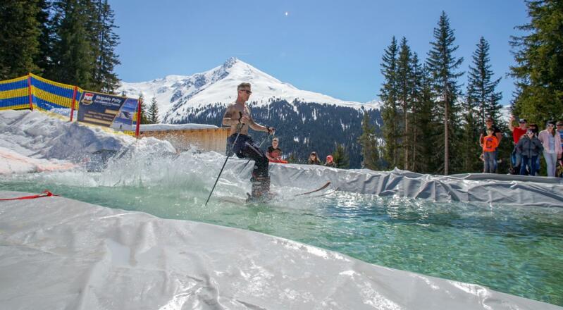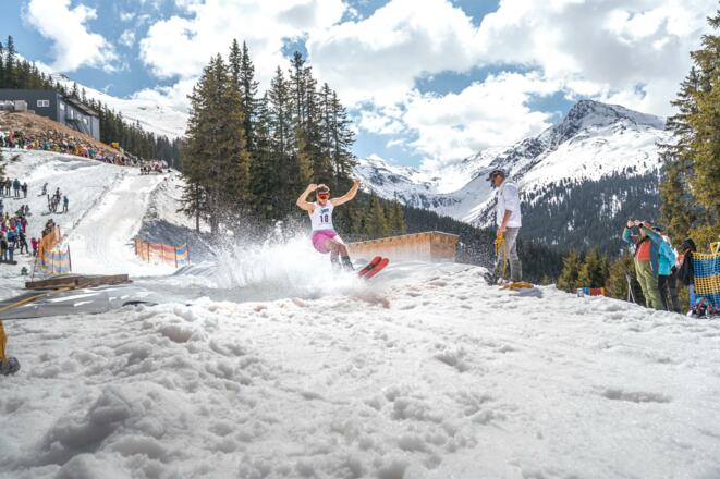 Am 19. April 2025 dürfen mutige Wintersportler zum legendären Watersurf Contest im Paznauner Skigebiet See antreten. Sie kämpfen um ein sattes Preisgeld.