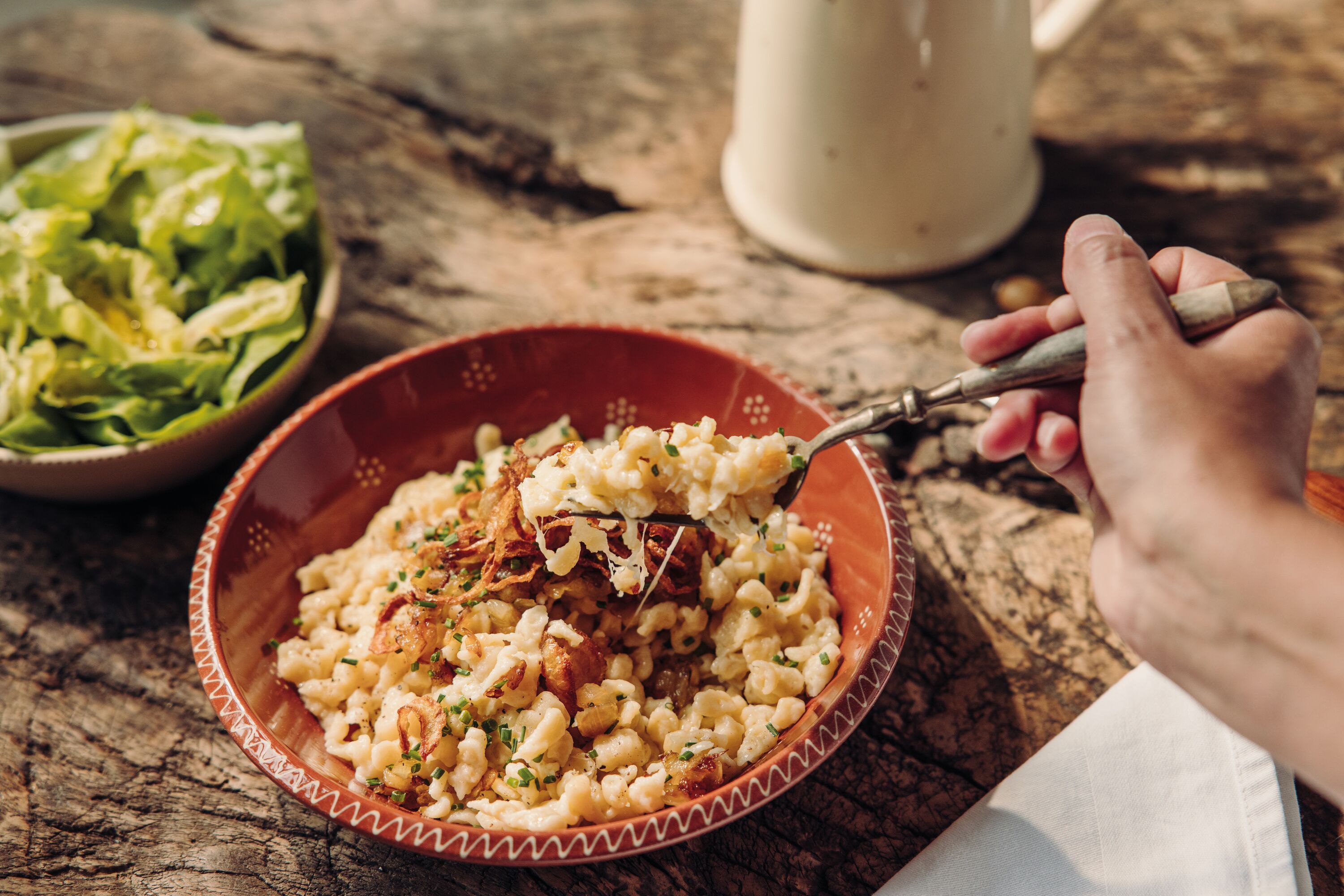Zum krönenden Abschluss genießt du eine frisch zubereitete Portion Kässpatzen inklusive Salat und einem Getränk (weitere Getränke sind vor Ort zu zahlen) in einem authentischen Immenstädter Gasthof. Sichere Dir jetzt Ihren Platz und lasse dich von der "Kässpatzenliebe" verzaubern!