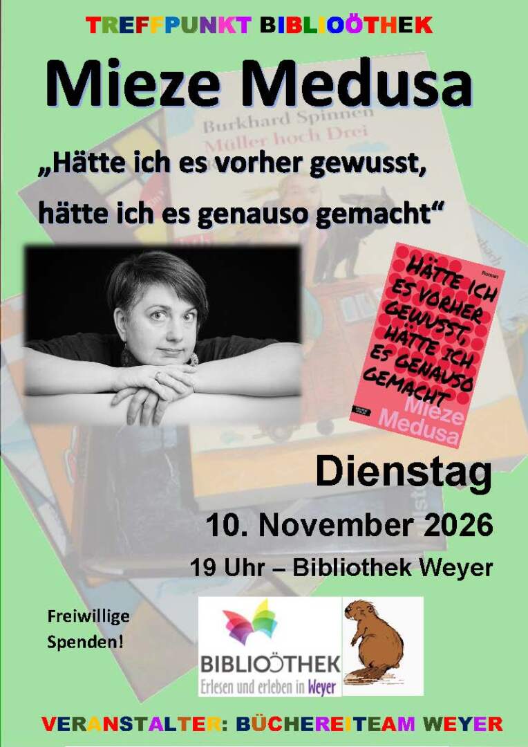 Lesung | Mieze Medusa - Hätte ich es vorher gewusst, hätte ich es genauso gemacht