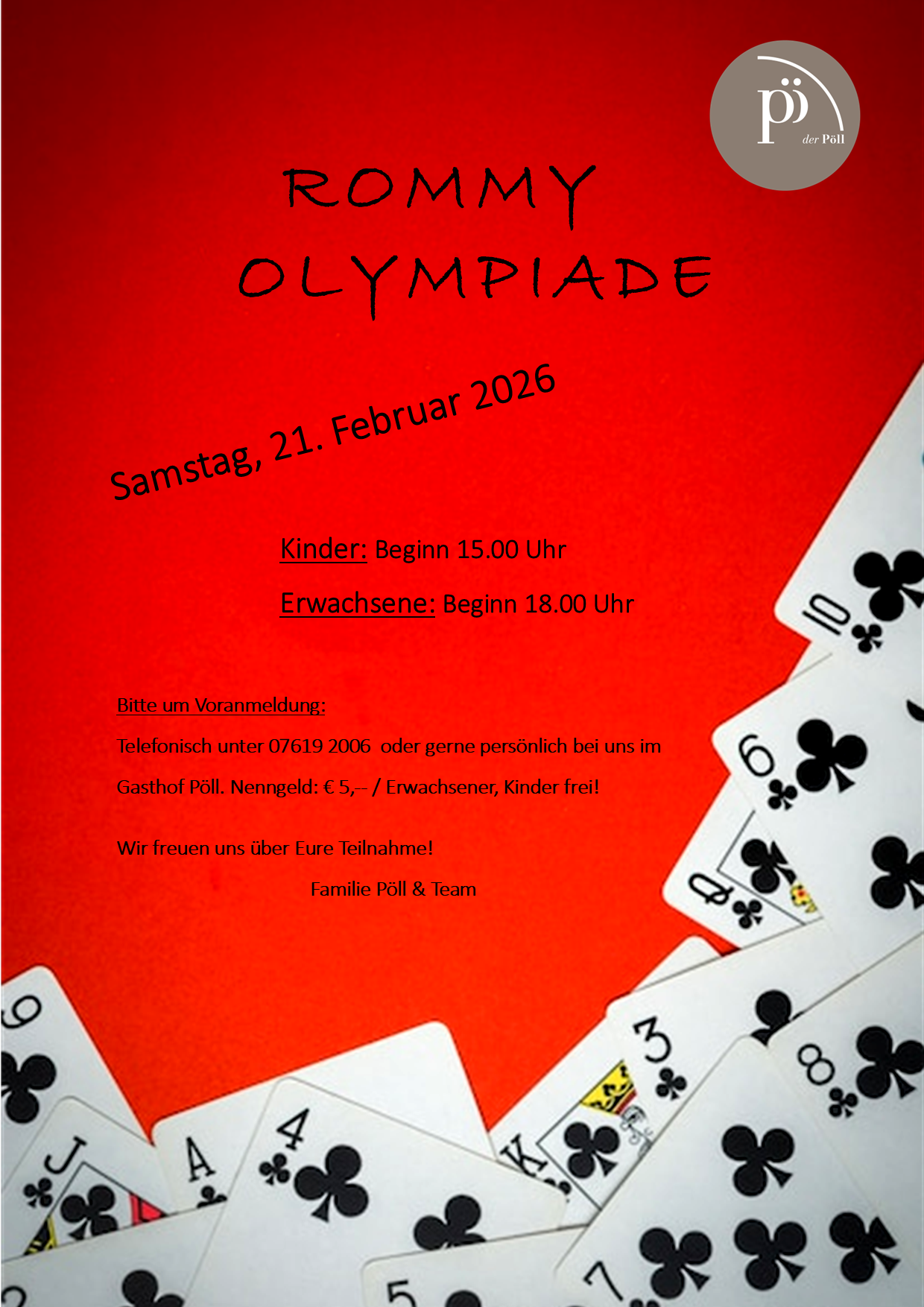 Telefonisch unter 07619 2006 oder gerne persönlich bei uns im Gasthof Pöll.