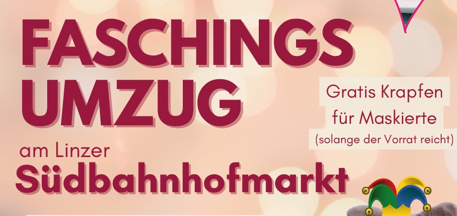 Wenn der Fasching seinen Höhepunkt erreicht, verwandelt sich der Linzer Südbahnhofmarkt wieder in einen Ort voller Farben, Musik und guter Laune. Am Samstag, 14. Februar 2026, lädt der Markt ab 10.00 Uhr zum traditionellen Faschingsumzug ein und bietet Besucherinnen und Besuchern ein fröhliches Spektakel mitten im Marktgeschehen.