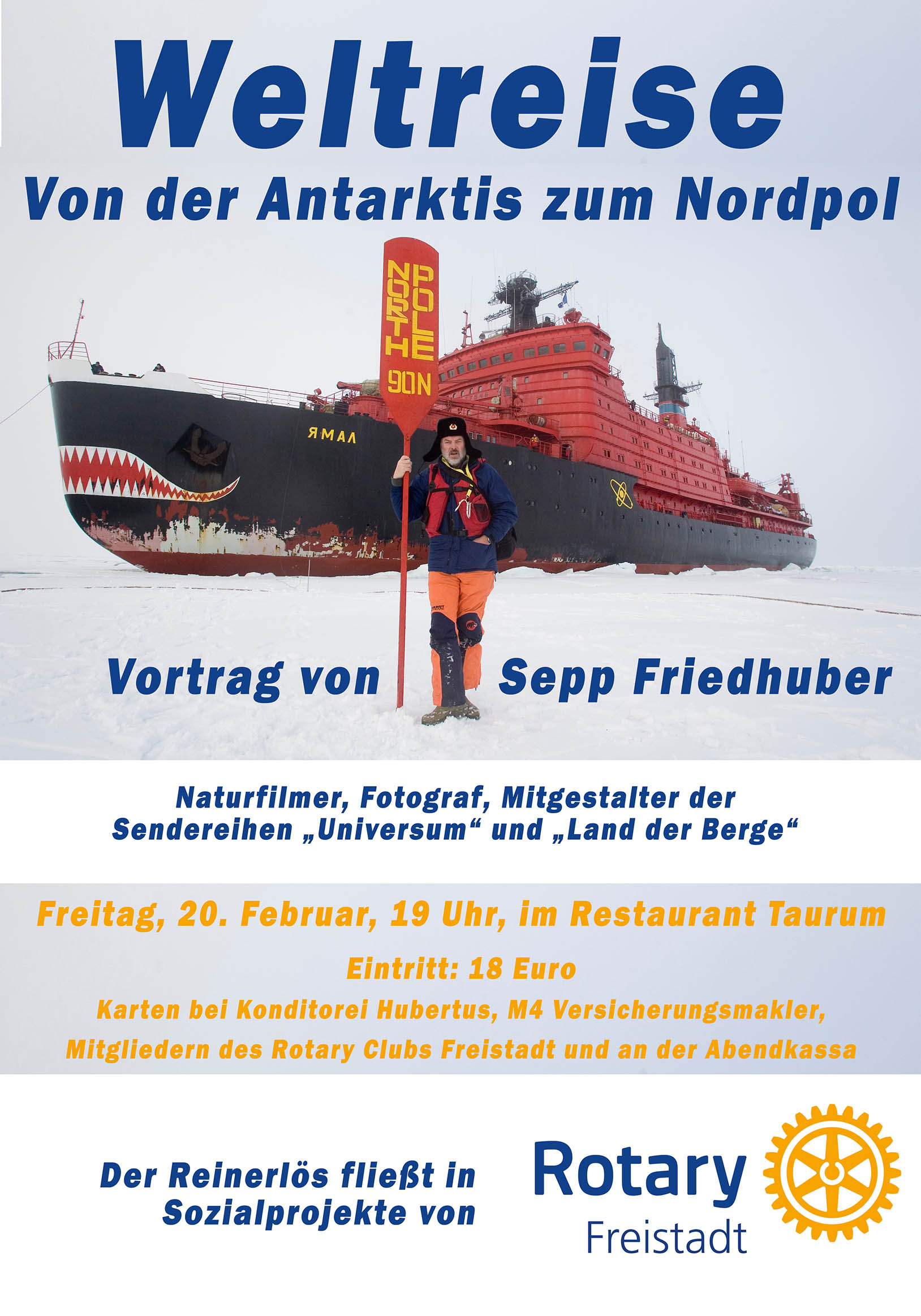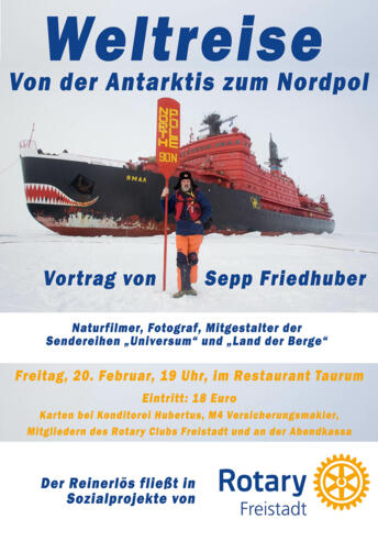 Vortrag von Sepp Friedhuber über seine Weltreise - Von der Antarktis bis zum Nordpol.