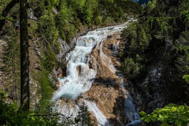 Zwischen schroffem Fels und freiem Fall bahnt sich ein Wildbach seinen tosenden Weg durch das Karwendeltal. Über die Jahrtausende schliff er hier eine eindrucksvolle Schlucht in den Berg und schuf so auch Lebensräume für zahlreiche Tierarten.