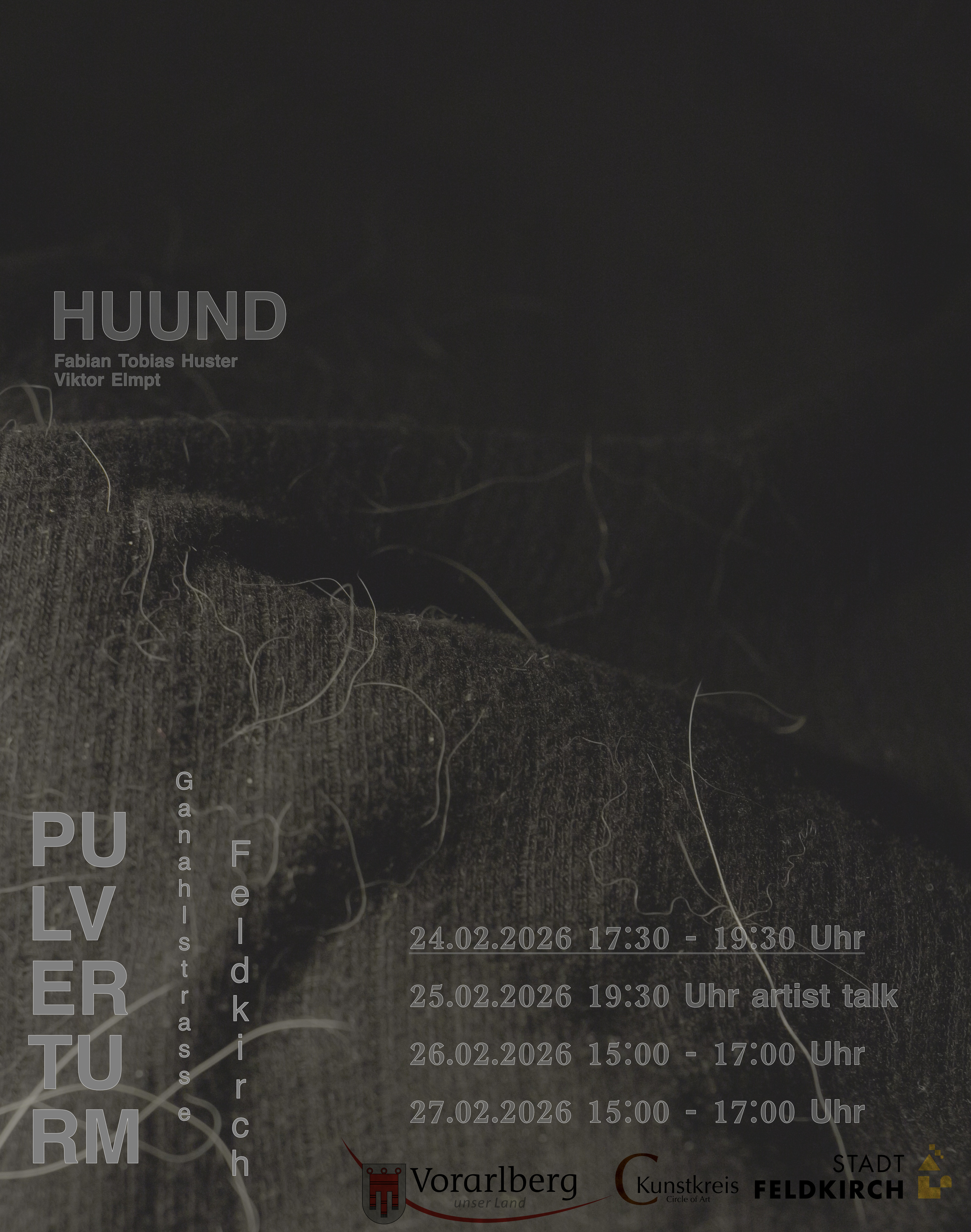 HUUND ist eine immersive Installation und Performance von Fabian Tobias Huster und Viktor Elmpt, die sich der Vorarlberger Sage des Klushundes auf zeitgenössische Weise nähert. Anstatt sich klassischer Narration zu bedienen, wird Mythos über soziale, körperliche und emotionale Dynamiken unmittelbar erfahrbar gemacht.