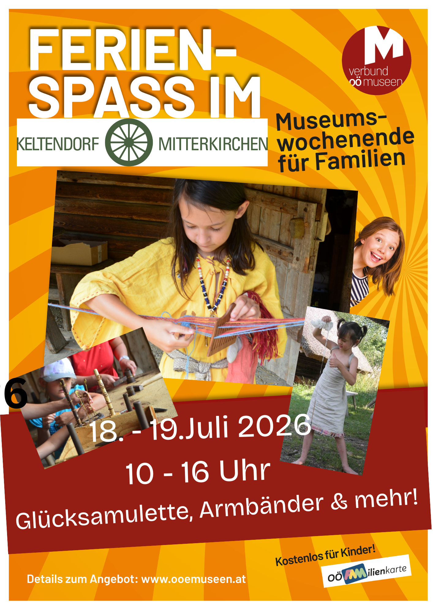 Am Ferienspaß-Wochenende lädt das Museum Kinder, Familien und alle Neugierigen zu einer spannenden Reise in die Welt von Schmuck und Mode ein. Gemeinsam entdecken wir, wie Menschen früher lebten, sich kleideten und schmückten.An beiden Tagen finden um 11 und 14 Uhr kostenlose Führungen statt, die kindgerecht und anschaulich durch das Thema führen. Bitte beachten: Der Museumseintritt ist zu bezahlen.Danach wird es kreativ: Kinder und Erwachsene können selbst aktiv werden, Glücksamulette herstellen, bunte Armbänder oder sogar einen eigenen Gürtel weben. Wer besonders viel Lust auf Ausprobieren hat, kann die Kette für einen Schmuckanhänger selbst aus Schafswolle spinnen – ein echtes Highlight für kleine und große Bastelfans! Materialkosten: freiwillige Spende