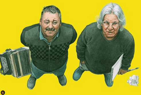 Zwei, die ihre Haltung, ihren Widerstandsgeist, ihre Liebe zu den Menschen und ihre zeitweilige Verwunderung über selbige in ihrer Kunst zum Ausdruck bringen: Der eine zeichnet und malt, der andere singt und spielt auf seiner Ziehharmonika.