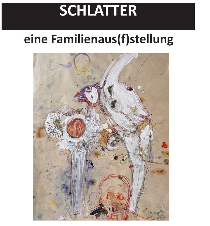 Dies ist eine Familienausstellung von Sarah, Helmut, Manfred und Dietmar. Sarah zeigt Fotografien und Installationen, Helmut Schlatter Zeichnungen und Malereien, Manfred Schlatter Schwarz-Weiß Streetphotographien und Dietmar Schlatter Bücher, Schriften, Liedertexte und gemalte Bilder.