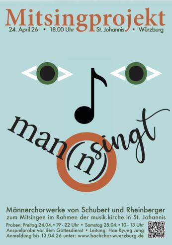 „Man(n) singt“ lautet der Titel des neuen Projekts des Bachchors Würzburg. Der Chor – bekannt durch seine Konzerte im Rahmen der Bachtage – lädt Chorsänger aus Würzburg und Umgebung herzlich zum Mitsingen ein.