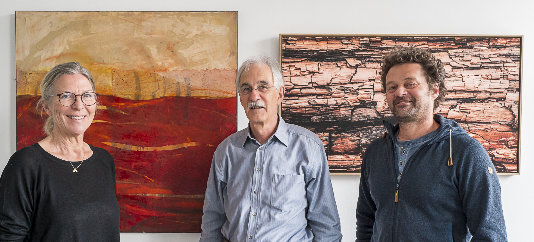 Gabriele Burtscher, Jean Theisen und Walter Fitz zeigen Malereien, Fotografien und Erdmonolithe. Es ist die zweite Gemeinschaftsausstellung der drei Harder Künstler:innen zu diesem Thema.