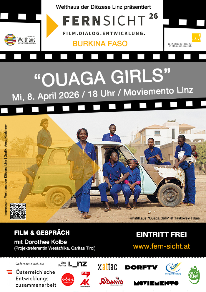 Das detaillierte Programm – auch zu den weiteren Veranstaltungsorten – finden Sie auf der Webseite www.fern-sicht.at. Den Trailer zum Film finden Sie hier: Ouaga_GirlsFERNSICHT wird u.a. gefördert durch die Austrian Development Agency (ADA) aus Mitteln der Österreichischen Entwicklungszusammenarbeit, das Land OÖ, Linz Kultur und AK Kultur. In Kooperation mit Kath. Bildungswerk OÖ, Moviemento Linz, Frauenbüro Stadt Linz, Südwind OÖ, Attac, uvm.