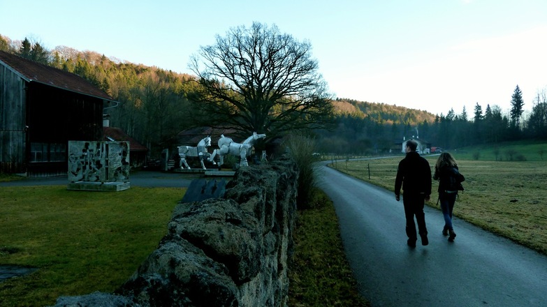 Vom Ausgangspunkt in Valley geht es erst einmal den Schlossberg steil bergab. Er führt ins Mangfalltal, bis kurz vor die Brücke über die Mangfall. Hier biegen wir nach links ab in Richtung Aumühle. Der Weg wird schmaler und führt zuerst an der Mangfall entlang, später wieder aufwärts bis nach Hohendilching. Dort gehen wir an der Kirche vorbei und geradeaus weiter entlang der Hänge des Mangfalltals. Wir bleiben auf diesem Weg und erreichen in Grubmühle das Mangfallknie. Das Knie ist der markante 'Knick' im Verlauf der Mangfall, wo bis vor 10.000 Jahren von Westen die Schmelzwasser des Isargletschers einmündeten. Hier überqueren wir die Mangfall und folgen der Teerstraße in Richtung Kleinhöhenkirchen. Sehr bald biegen wir aber nach rechts in einen Wanderweg ein, der uns diesmal auf der anderen Seite der Mangfall zurück über Hohendilching und Aumühle zum Schloss Valley bringt. Sehenswert in Valley ist das Orgelmuseum!