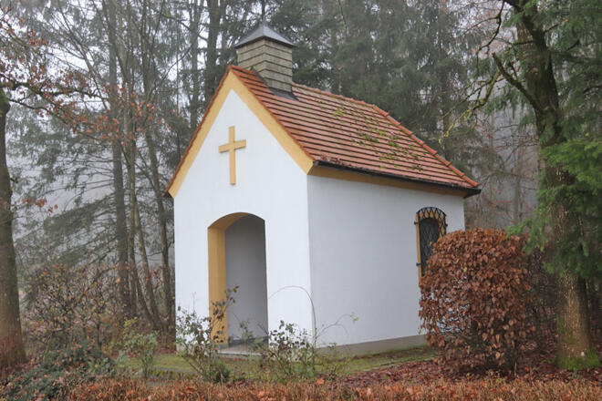 Vom Startpunkt bei der Waldkapelle bietet sich der Rundweg vorbei am See als Spazierweg an. Läufer durchqueren das langgezogene Waldstück bis zur Lichtung mit Blick auf die Tennisplätze in Ellenbogen. Auf dem gleichen Weg zurück und nach der Lichtung im Wald links zum See abbiegen. Über den Rundweg wieder zurück zum Parkplatz bei der Waldkapelle.