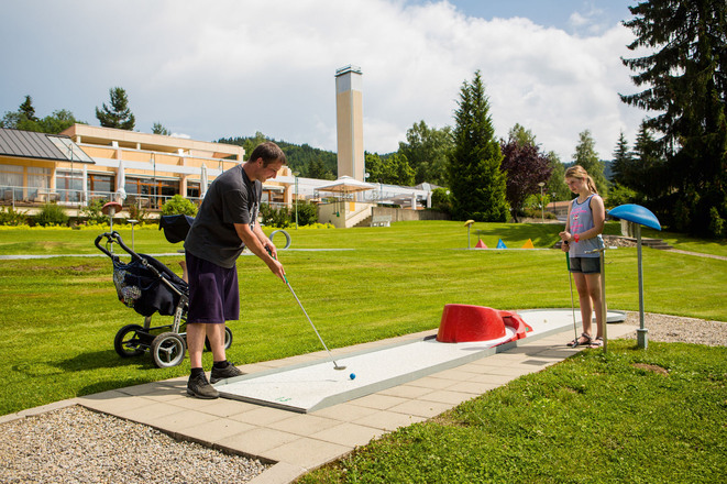 Spielplätze, Wasser- und Matschspielsplatz, Indoor-Spielparadies, Westernstadt, zeitweise Betreuung im Zergenclub, großes Erlebnisbad "Aquarosa" mit Sport- und Erlebnisbecken, Massage- und Wellnessbereich.