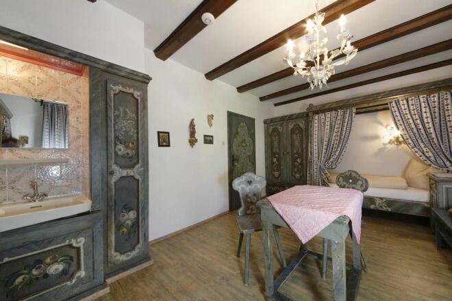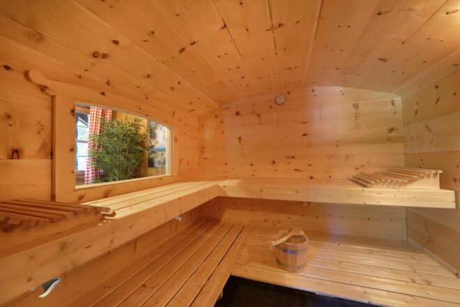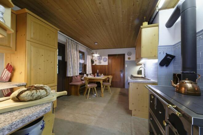 Mit 140 m² insgesamt 4 Schlafzimmern und 6 Schlafplätzen, Jagdstube mit Kachelofen, Wohnküche mit Holzofen, 2 WC , 1 Bad und eine Dusche. im Nebengebäude befindet sich eine Alpenblumen-Zirbensauna,Tauchbecken und Freilanddusche.