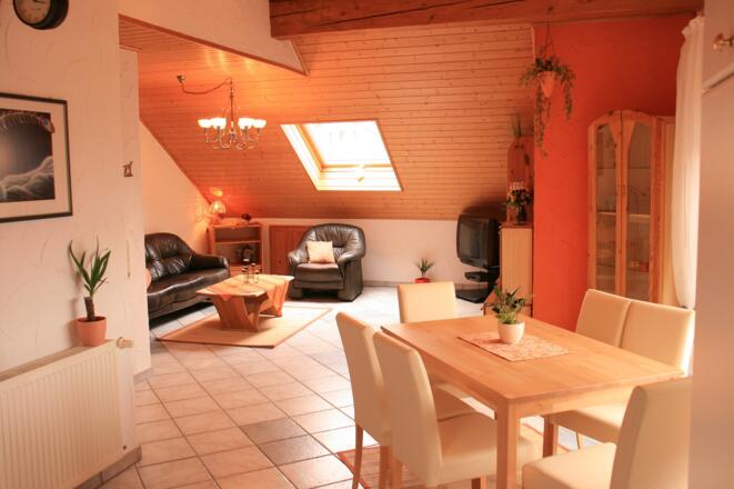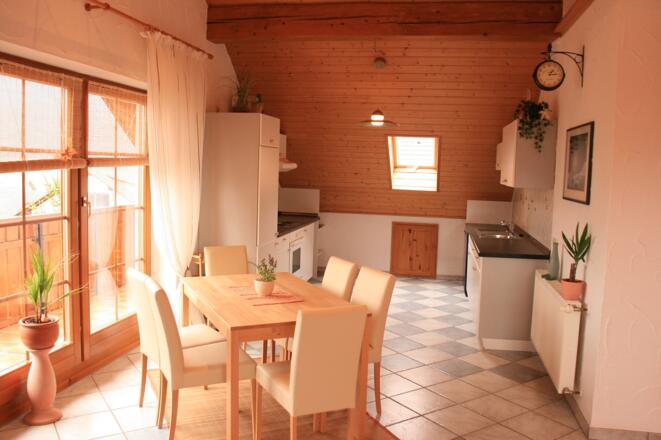 Es erwartet Sie eine große gemütliche, neu renovierte Ferienwohnung mit zwei überdachten Balkonen mit Sonnenliegen sowie einen herrlichen Ausblick auf das Maintal und die Weinberge. Die Wohnung bietet eine komplett ausgestatte Küche (u.a. Spül-, Kaffeemaschine, Mikrowelle, Toaster, Wasserkocher). Außerdem sind noch vorhanden: Radio, Sat- TV, Telefon, Bügeleisen, Bügelbrett sowie Kinderreisebett und -hochstuhl.