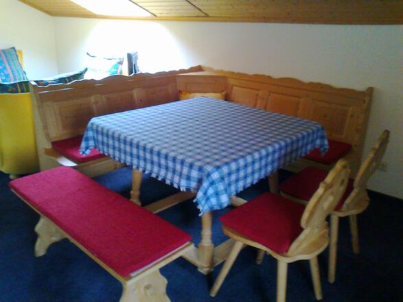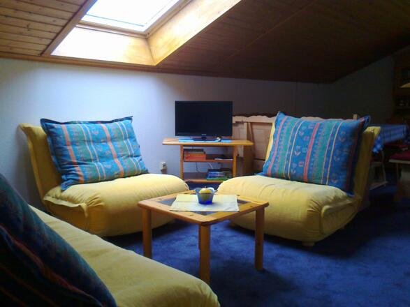 Küche mit Spülmaschine, Kaffeemaschine, Grundausstattung Wohn-Essbereich mit Sat-TV und Anrichte mit Geschirr, WLAN 2 Schlafzimmer, Fahrrad bzw. Skikeller, Waschmaschinennutzung möglich, kein Stellplatz, aber Parkmöglichkeiten in der Nähe des Hauses, Bad mit Fenster, Dusche und WC, Nichtraucher, keine Haustiere Bitte berücksichtigen Sie, dass zum Appartment viele Treppenstufen führen. Restaurant nebenan, Lebensmittel 200 m. 2 min zur Bushaltestelle, 10 min zur S-Bahn per Bus oder Auto. Endreinigung 50,--€ Wir freuen uns auf Ihre Anfrage.
