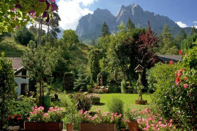 In unserer gemütlichen FeWo (ca. 50 qm) haben Sie 1 Schlafzimmer f. 2 - 3 Personen, 1 Wohnzimmer mit Schlafcouch, Küchenzeile mit Herd und Micro, Kachelofen, TV, WLAN kostenfrei, 1 Bad/DU/WC, Fön. Der herrliche Gebirgsblick von unserer Terrasse ist für Sie reserviert! Ihre Wanderungen zur Neuneralm, Eibsee oder Höllentalklamm starten Sie direkt vor der Haustüre.