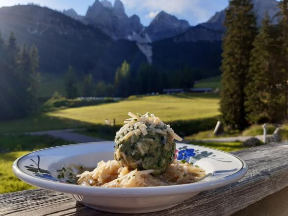 Beim Einlösen der Almcard haben Sie die Qual der Wahl: Die Oberhofalm verwöhnt mit Spinatknödeln und die Unterhofalm mit Pofesen.