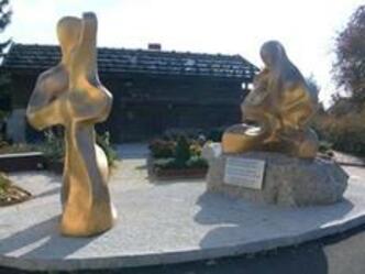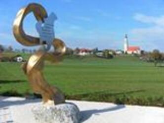 Wir wandern rechts oder links des Heimathauses leicht fallend südwärts knapp 200m zum ersten Skulpturenplatz des Rundweges: Europa. Schautafeln berichten über die Lebensbedingungen im Europa zu Grubers Lebzeit. Die Stille Nacht Gravur auf der Europaplatte wird umschlungen von symbolischen Bronzeflügeln.