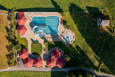 Das Herzstück bildet das 25-Meter-Schwimmbecken, ideal für sportliche Schwimmer und alle, die ihre Bahnen ziehen möchten. Das 20-Meter-Nichtschwimmerbecken mit der 45 Meter langen Wasserrutschbahn sorgt für Action und Adrenalin – hier flitzen Kinder mit Begeisterung ins kühle Nass und freuen sich schon auf die nächste Rutschpartie. Für zusätzliche Abwechslung sorgen die erfrischende Sprudelanlage und der Wasserfall mit entspannender Nackendusche, der nach einer Bergwanderung zur wohltuenden Massage einlädt.