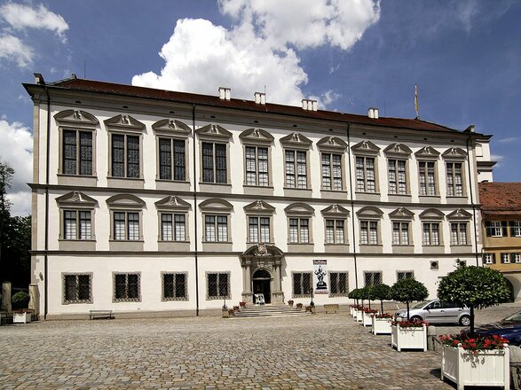 Barockes Residenzschloss, erbaut 1679-1687 mit prunkvollen Stuckaturen von Mathias Schmuzer aus Wessobrunn und großartigem Deckenstuck im lichtdurchfluteten Festsaal. Ausgestattet unter anderem mit