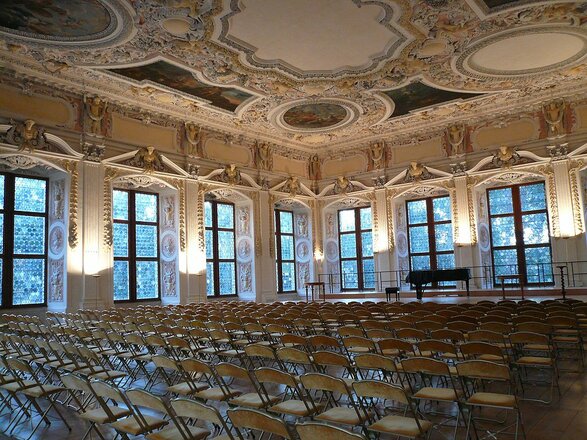Im barocken Festsaal finden alljährlich die bekannten Oettinger Residenzkonzerte statt.