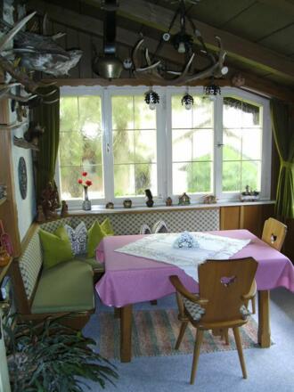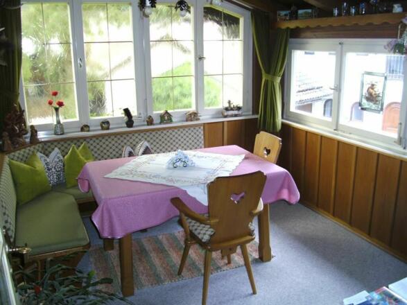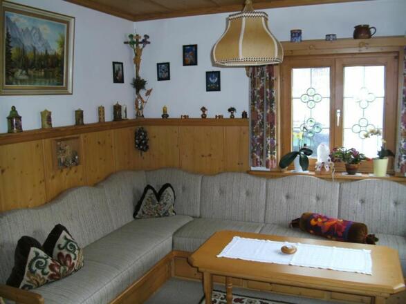 Frühstücksraum. Aufenthaltsraum mit Kabel-TV. Reichhaltiges Frühstück. Wanderwege, Schwimmbad, Bushaltestelle, Zugspitzbahnhof und im Winter Loipen sind in unmittelbarer Nähe. Parkplätze am Haus.