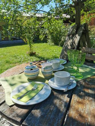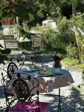 Idyllisch inmitten der Natur lädt eine Oase der Ruhe zum Verweilen ein. Kaffee und selbst gebackener Kuchen kann inmitten des Gartens genossen werden...