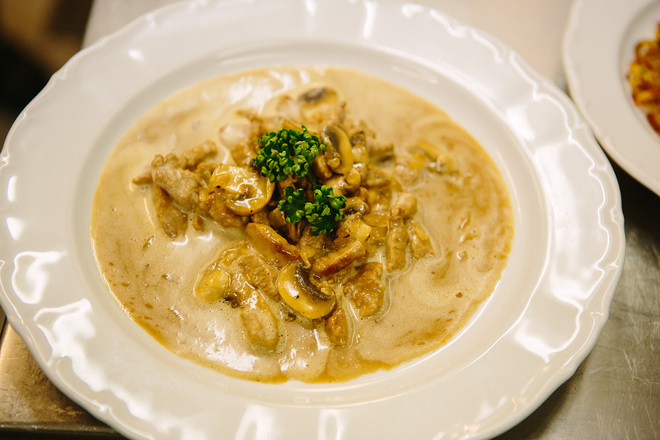 Schnitzel- und Bratensemmel, Kaffee und Kuchen,