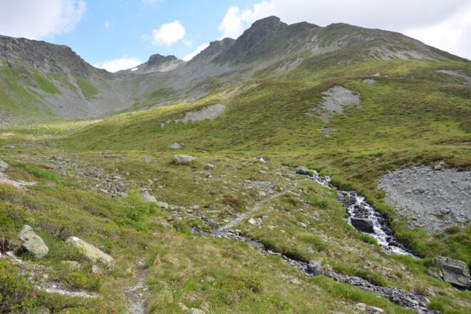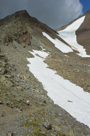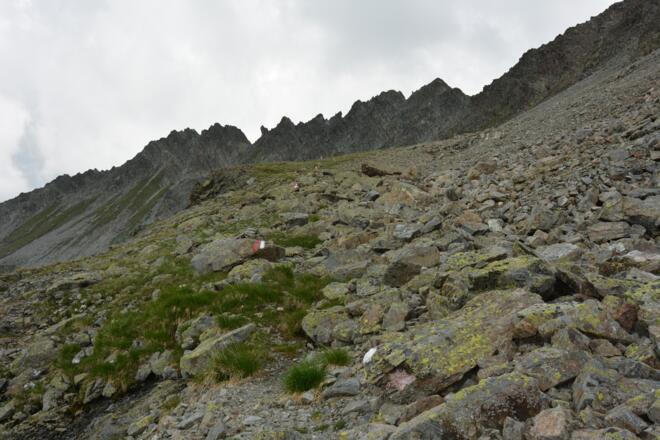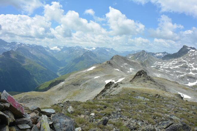 Auf dem östlichen Georg Prasser Weg kann man bei gemütliche Anstiegen Einblicke in das schöne Verwall geniesen. Bis auf einen Anstieg über ein Schneefeld hat der Weg keine nennenswerte Schwierigkeiten und ausgesetzte Passagen.