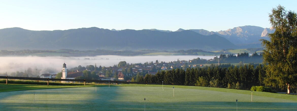 Der Blick auf die Bayerischen, die Allgäuer und die Tiroler Alpen, den malerisch in die Landschaft eingebetteten Ferienort Lechbruck mit dem Lechstausee und die grüne Hügellandschaft des Allgäu mit seinen typischen Einzelgehöften wird Sie das Golfspielen fast vergessen lassen.