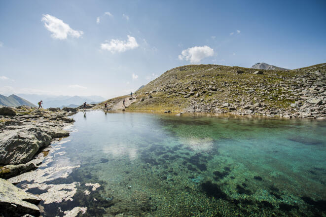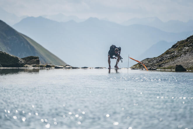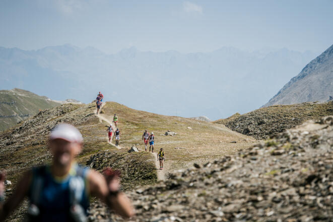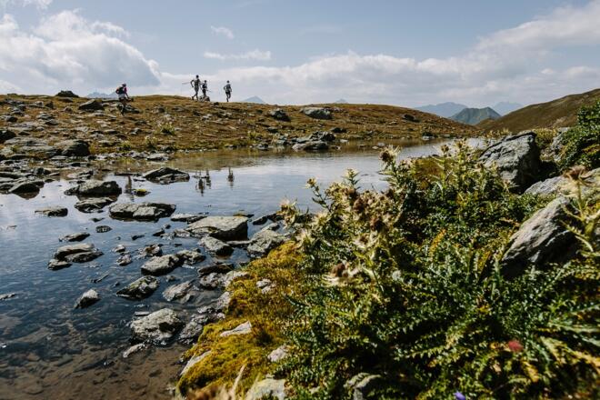 Die längste Etappe fordert auf 46,5 km stramme Waden und Durchhaltevermögen. Dabei ist zwischen Landeck und Samnaun von der breiten Forststraße bis zu einsamen Pfaden und weglosen Passagen im Hochgebirge alles geboten. Wer nach über 30 Kilometern auf dem höchsten Punkt, der knapp 2.800 m hohen Ochenscharte angelangt ist, darf sich auf ein fantastisches Panorama aber nicht auf einen gemächlichen Abstieg ins Ziel freuen. Denn die letzten stetig leicht ansteigenden Kilometer vor Samnaun haben es noch mal richtig in sich.