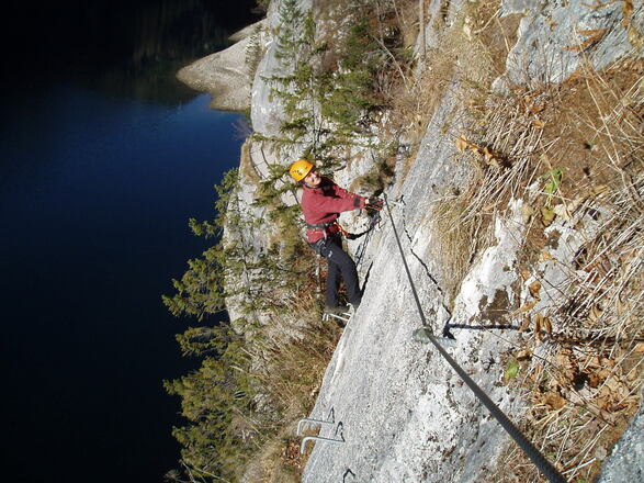 Der Laserer alpin Klettersteig ist einer der schönsten im Salzkammergut. Man klettert oberhalb des Gosausees und hat einen beeindruckenden Blick auf das Dachsteinmassiv und den See.