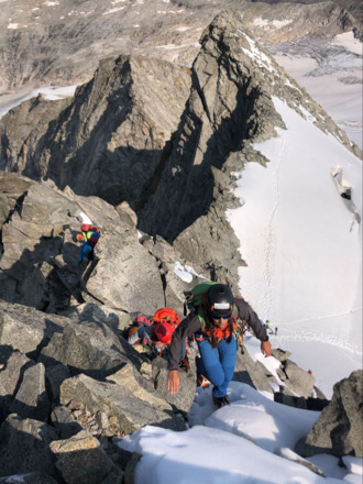 Anspruchsvolle Grattour mit Gletscherquerung. Deshalb ist Fels- und Gletscherausrüstung mitzuführen.