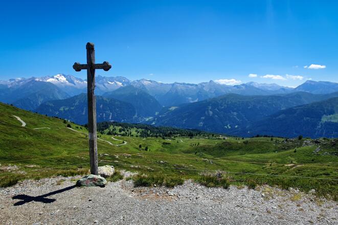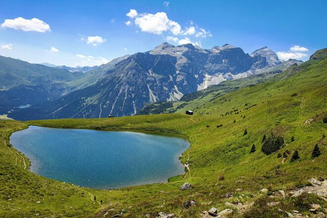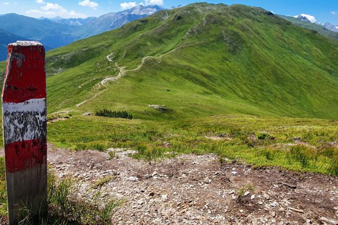 Vom Nößlachjoch läufst du auf einem sanften Grasrücken über den Eggerberg zum Lichtsee (Weg Nr. 42). Die weiten Almwiesen sind federnd weich und die ersten Kilometer vergehen fast wie im Fluge.