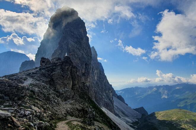 Nach der ersten noch vergleichsweise gemütlichen Etappe wird es auf der 2. Etappe wild und felsig! Von der Tribulaunhütte geht's zunächst nach Südtirol und von dort aus wieder zurück nach Österreich zur Bremerhütte.